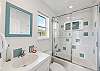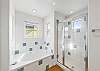 - Bedroom 2: King bed, TV, and ensuite bath with low-entry tiled shower, door to balcony