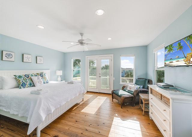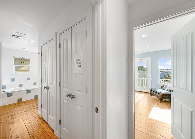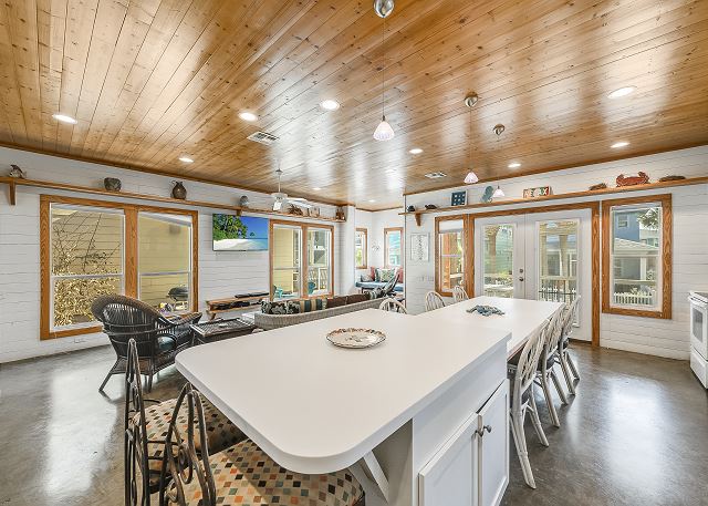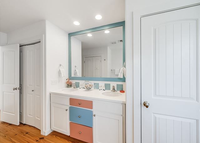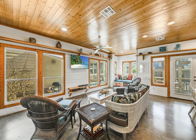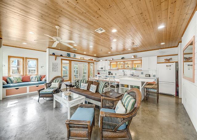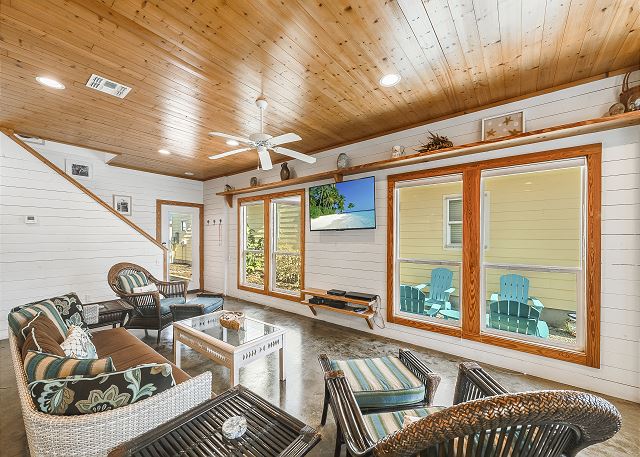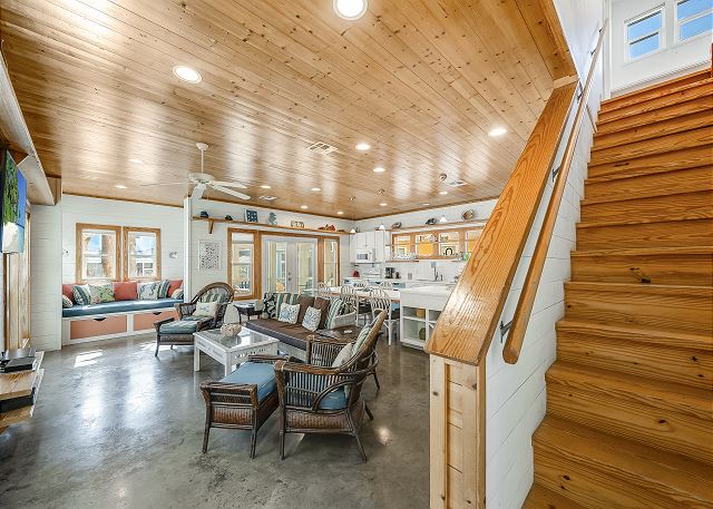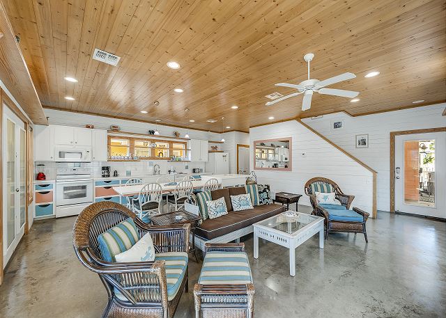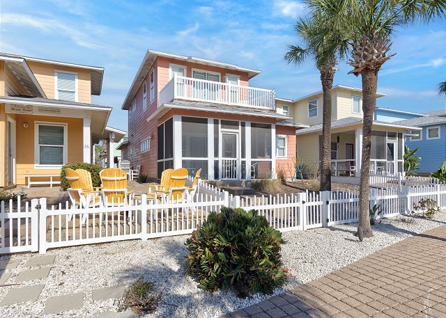 The ground floor of this home has an open living room, kitchen and dining area. There is a full bath on this level along with a great screened in porch. The first bedroom is on the ground level offers a queen bed. The upstairs offers the primary bedroom, with a king size bed and a fabulous full bath and walk in shower. The third bedroom, which is also upstairs, has one queen bed and a set of twin over twin bunkbeds. The third full bath is located in the hall. This home sleeps a maximum of 8 guests and is just a short drive to the beach. Outdoors you will find a table and chairs with a charcoal grill. Bring the family and have a blast, Coral Paradise is the perfect family vacation home!