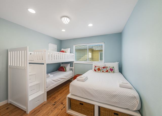 - Bedroom 3: Queen bed, a set of twin bunk beds