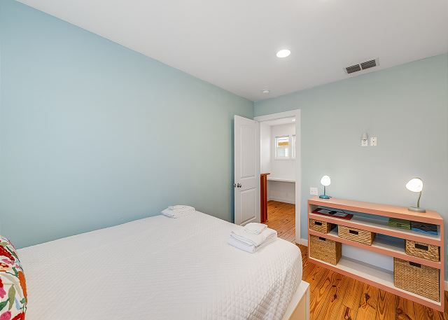 - Bedroom 1: Queen bed on ground floor